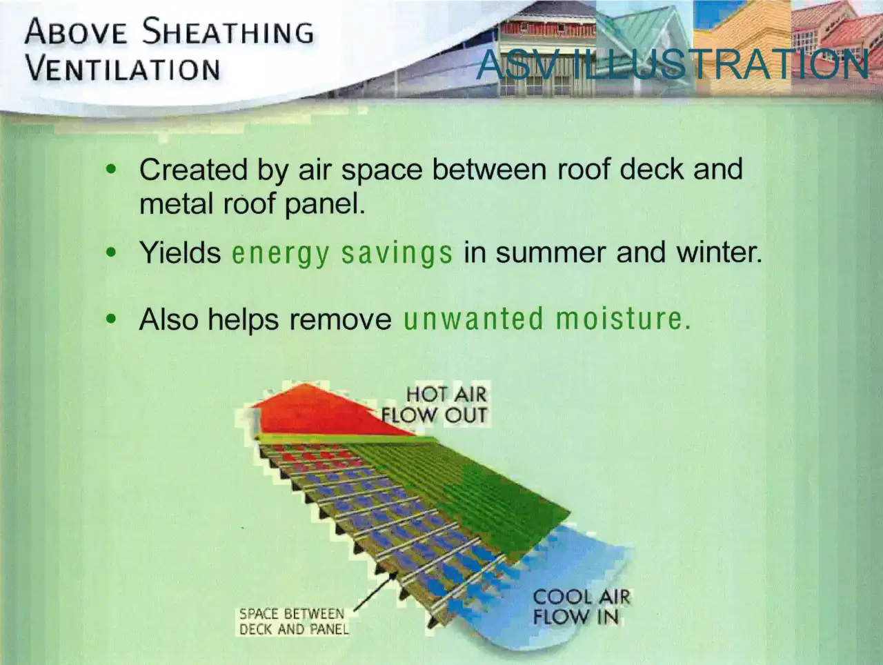 Reduces Heat Transfer! ( ASV- Above Sheathing Ventilation ).